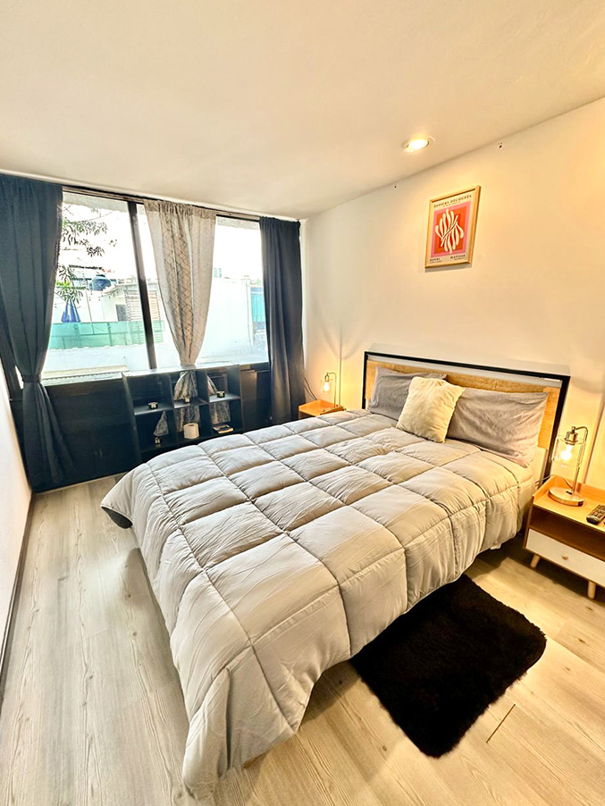 Departamento en el corazón de la Condesa que combina diseño moderno con detalles cálidos y únicos. Ideal para quienes buscan comodidad y conectividad, cuenta con internet de alta velocidad y conexión por ethernet. Está equipado con nevera, cafetera y horno. Ubicado en una zona tranquila y segura, a pocos metros de cafeterías, restaurantes y servicios. El condominio ofrece seguridad 24/7, asegurando una estancia sin preocupaciones en uno de los vecindarios más vibrantes de la ciudad.